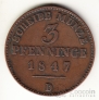 Германия - Пруссия 3 пфеннига 1847 D