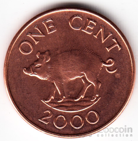 Бермуды 1 цент 2000. Поросенок. Состояние UNC, монета из банковского мешка.