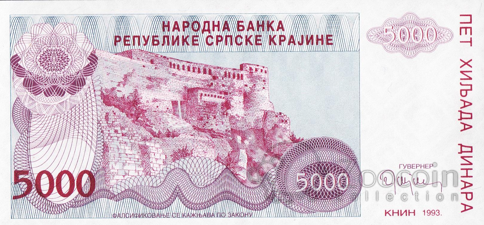 Хорватия - Сербская Краина 5000 динара 1993 Хорватия - Сербская Краина 5000 динара 1993