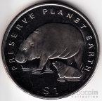 Либерия 1 доллар 1994 Фауна - Карликовый бегемот