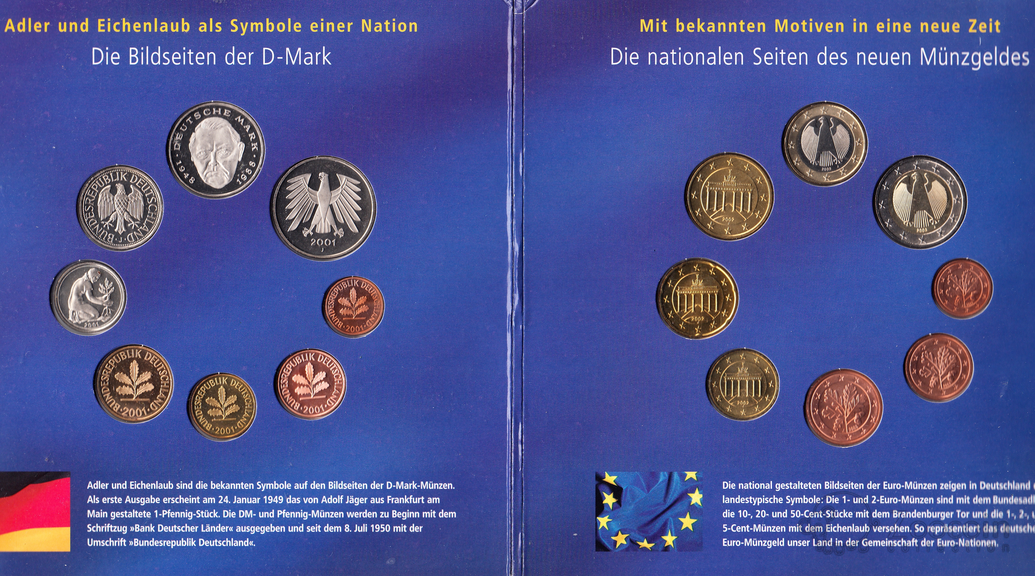 Германия набор 16 монет 2001-2002 Евро и марки (блистер)