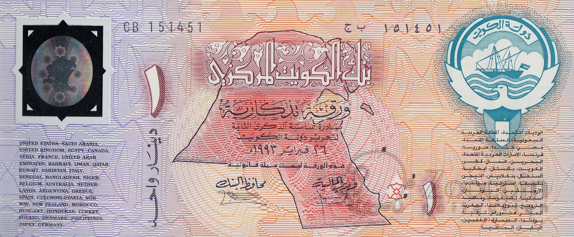 Кувейт 1 динар 1993 Годовщина освобождения Кувейт 1 динар 1993 Годовщина освобождения