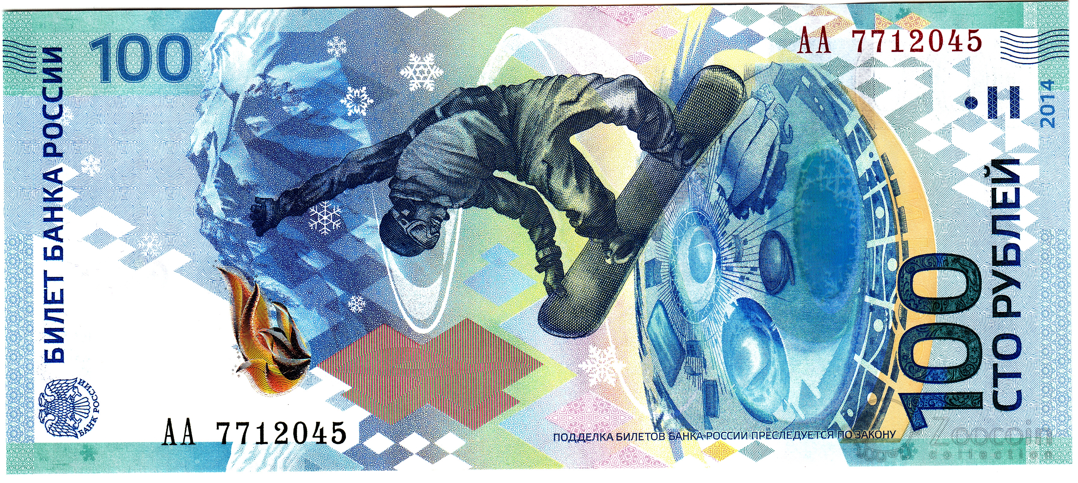 Россия 100 рублей 2014 г. Олимпиада в Сочи. Серия АА.