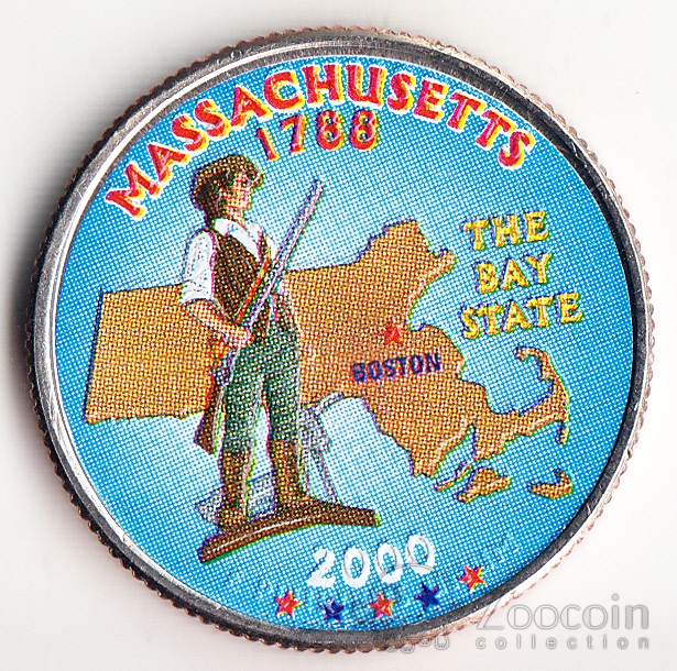 США 25 центов 2000 Штаты США - Massachusetts (цветная №1)