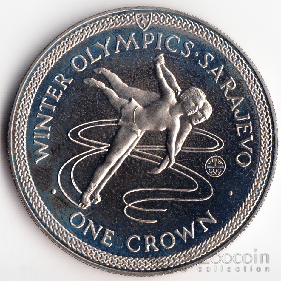 Остров Мэн 1 крона 1984 Олимпийские игры в Сараево - фигурное катание (Proof)