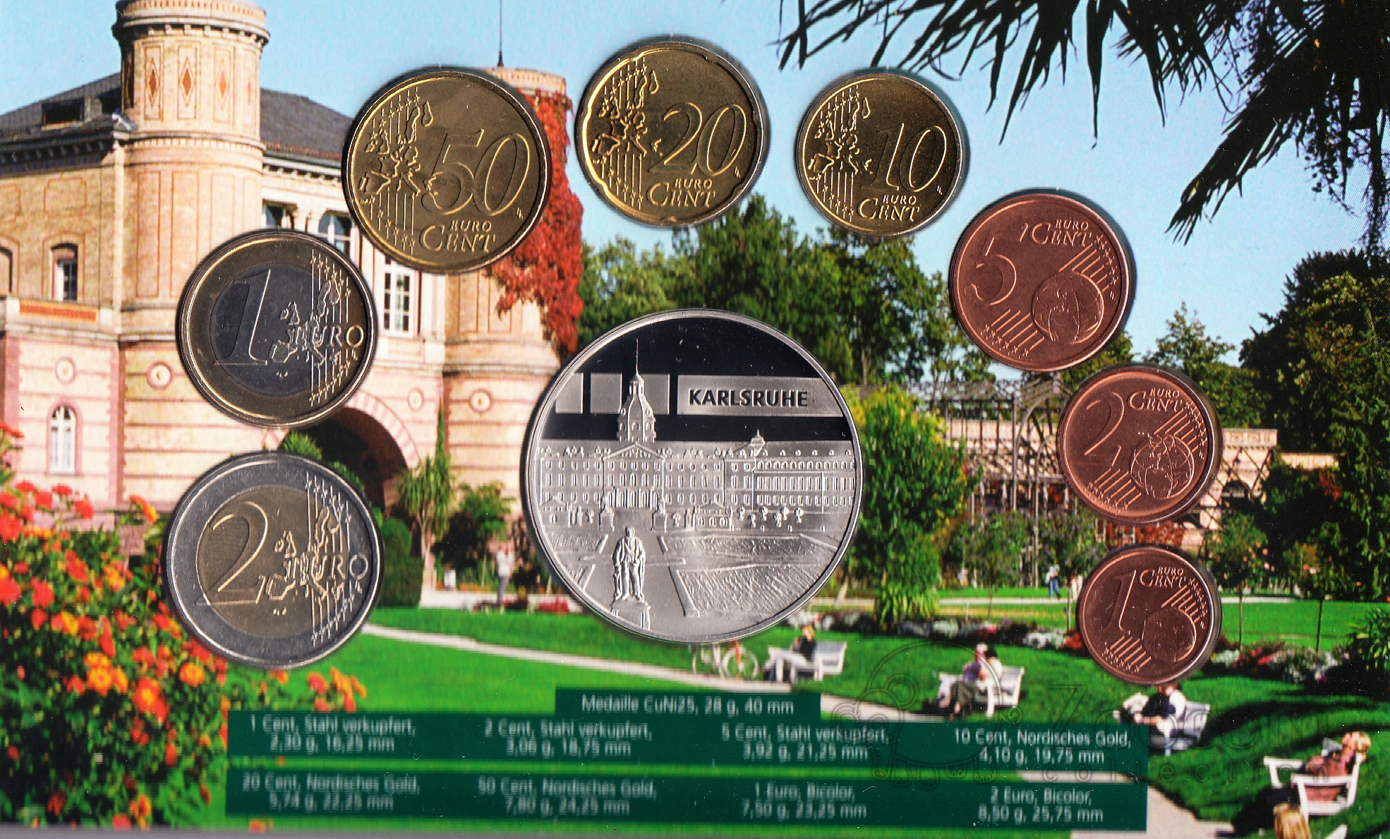 Германия набор 8 монет евро 2003 С жетоном Карлсруэ (блистер)