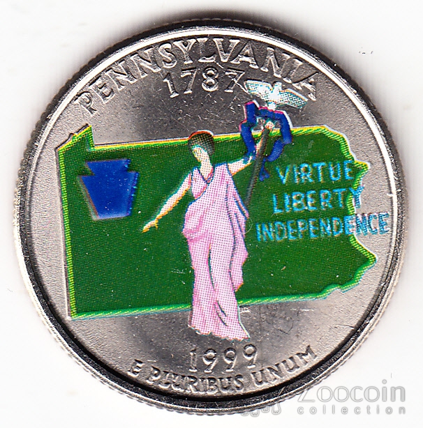 США 25 центов 1999 Штаты США - Pennsylvania (цветная №2)