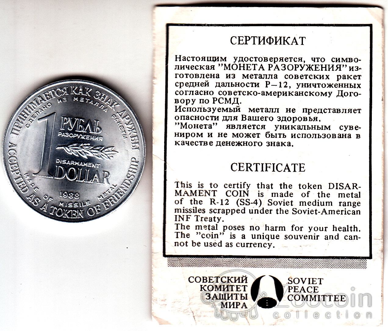 СССР жетон 1 рубль разоружения 1988
