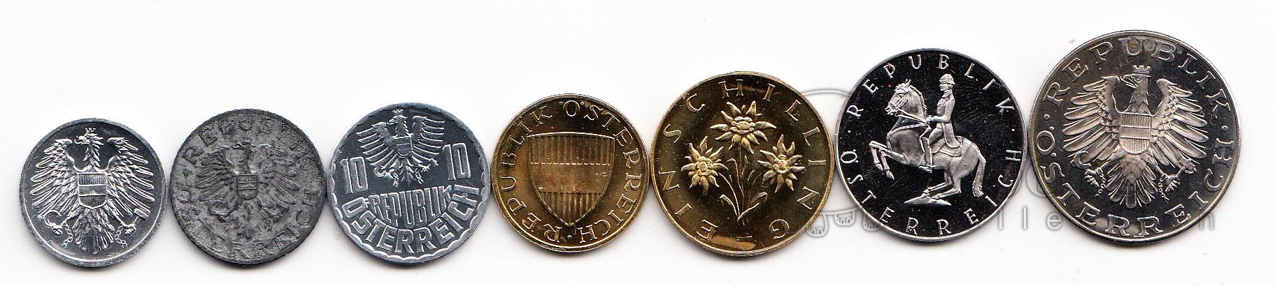 Австрия набор 7 монет 1975 Австрия набор 7 монет 1975