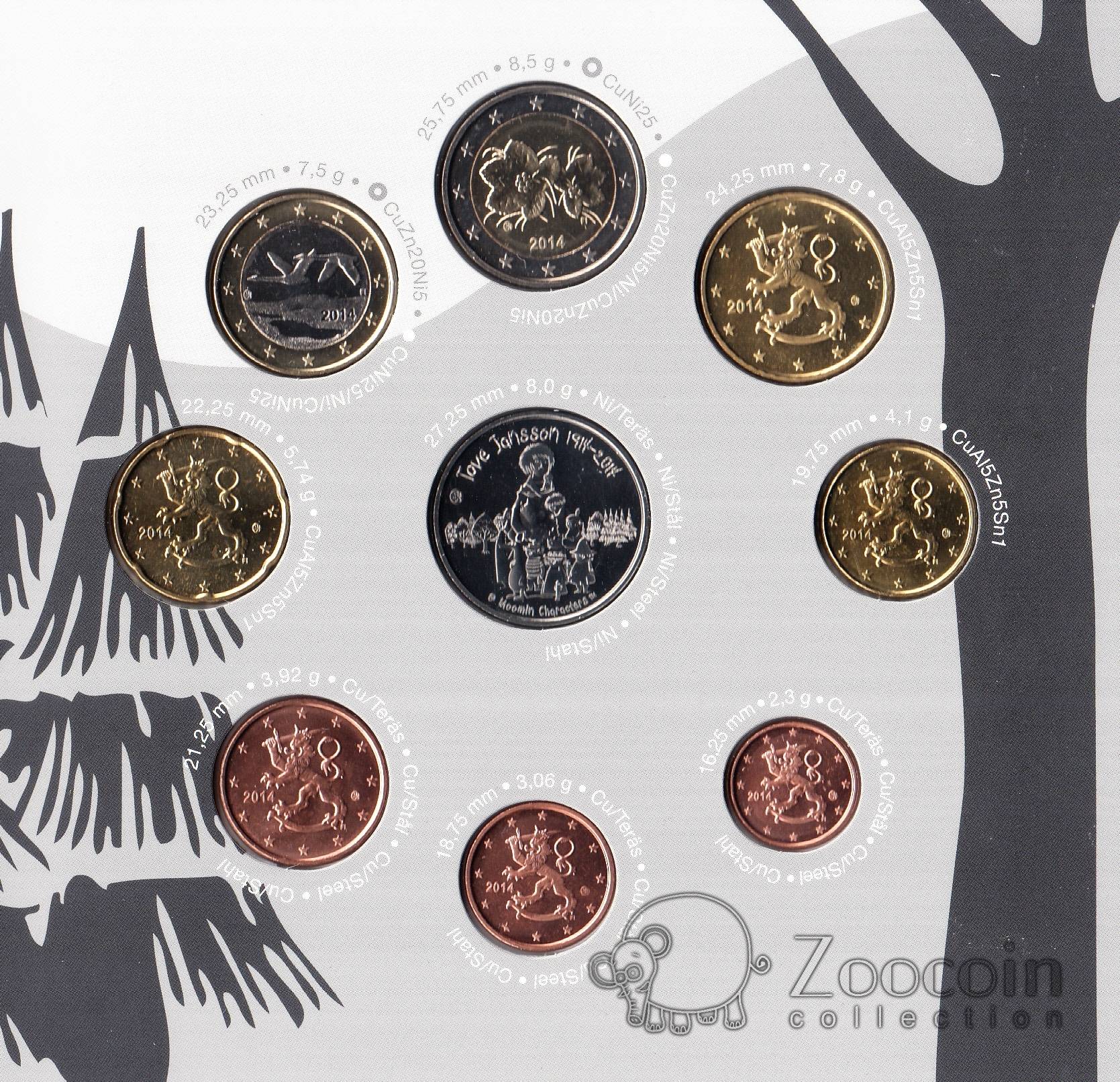 Финляндия набор 8 монет евро 2014 с жетоном Туве Янсон (блистер)