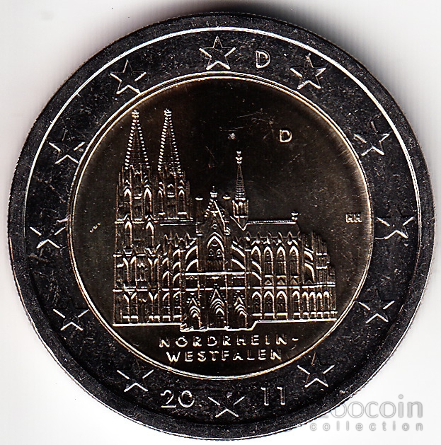 Германия 2 евро 2011 D (Монетный двор: Мюнхен) - Кельнский собор. Состояние UNC, монета из банковского ролла.