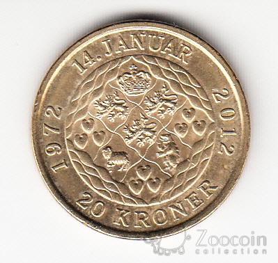 Дания 20 крон 2012 40 лет коронации Дания 20 крон 2012 40 лет коронации