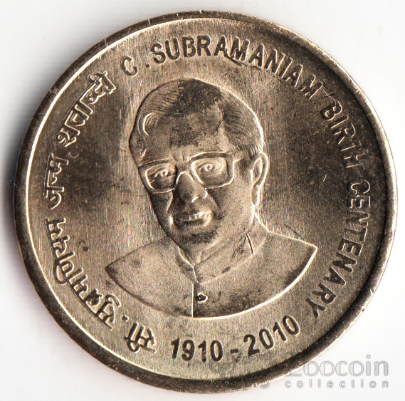 Индия 5 рупий 2010 г. Чидамбарам Субраманиам