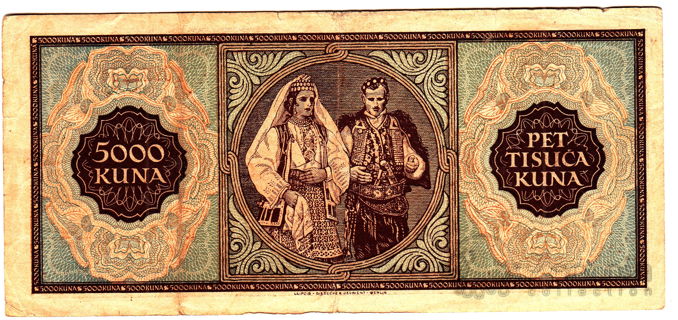 Хорватия 5000 куна 1943 Тип 1