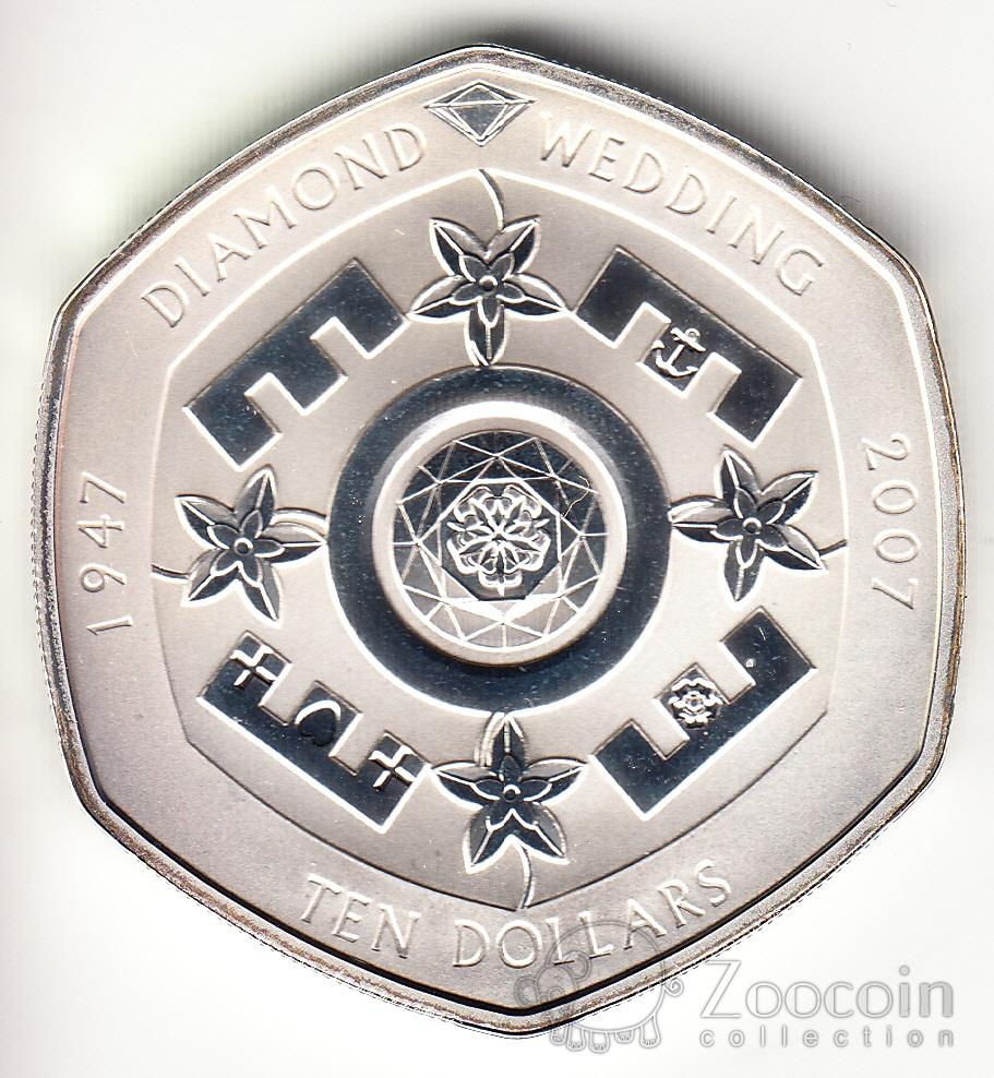 Фиджи 10 долларов 2007 60 лет Свадьбы Королевы Елизаветы 2 и принца Филипа (серебро) №2