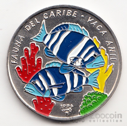 Куба 1 песо 1996 г. Две рыбки.