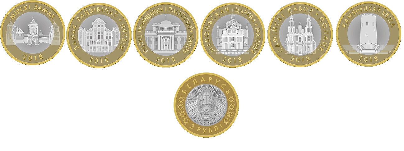 Беларусь набор 6 монет 2 рубля 2018 Архитектура Беларуси (блистер)