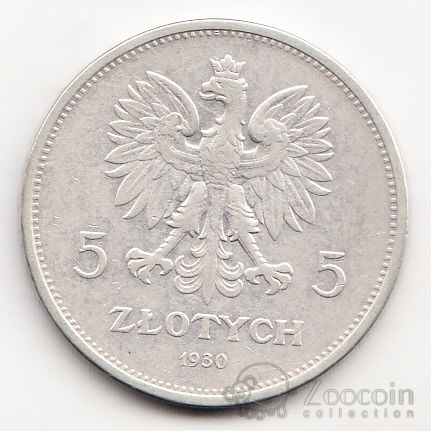 Польша 5 злотых 1930 100 лет Восстанию