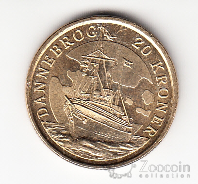 Дания 20 крон 2008 Корабль Даннеброг Дания 20 крон 2008 Корабль Даннеброг