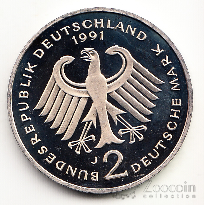 ФРГ 2 марки 1991 Людвиг Эрхард (Разные дворы) BU
