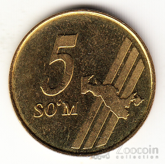 Узбекистан 5 сум 2001 Разновидность контура карты и покрытие "лимонка"!