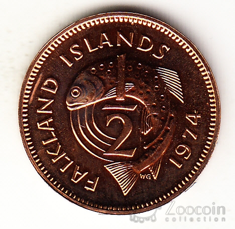 Фолклендские острова 1/2 пенни 1974 Рыба (BU)