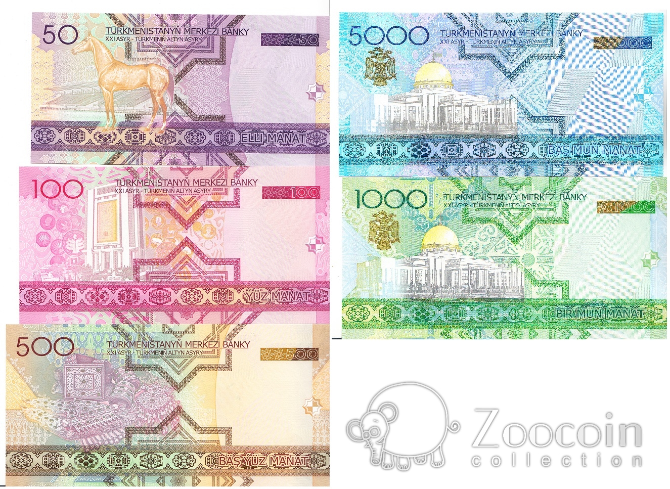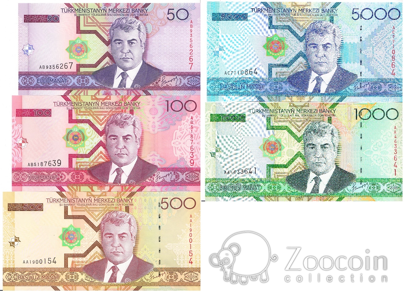 Туркменистан набор 5 банкнот 2005 Туркменистан набор 5 банкнот 2005