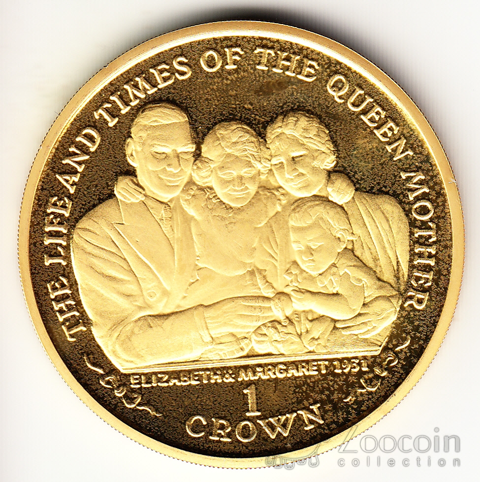 Остров Мэн 1 крона 2000 Жизнь Королевы Матери - Елизавета и Маргарет (позолота)