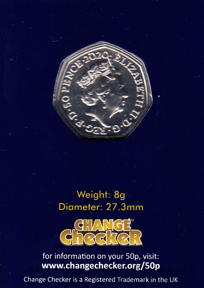 Великобритания 50 пенсов 2020 Игуанодон (карта)