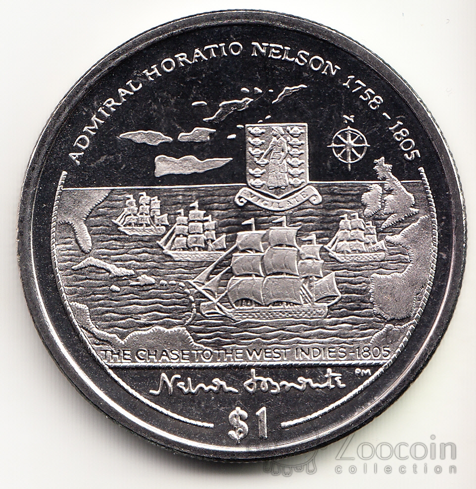Брит. Виргинские острова 1 доллар 2005 Жизнь Адмирала Г. Нельсона №2