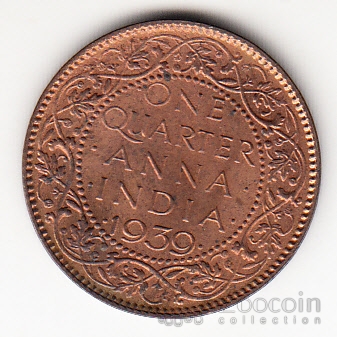 Индия - Британская Индия 1/4 анны 1939 Индия - Британская Индия 1/4 анны 1939