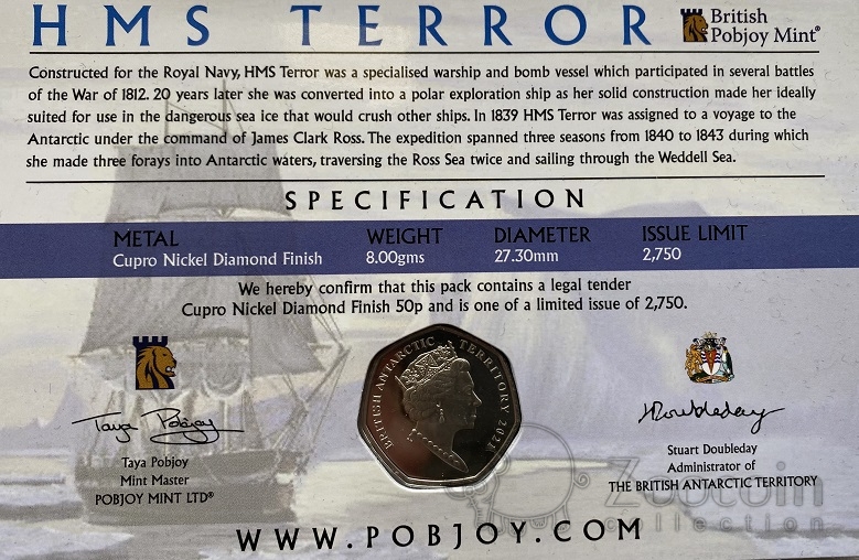Брит. Антарктические территории 50 пенсов 2021 Корабль "Террор" (блистер)