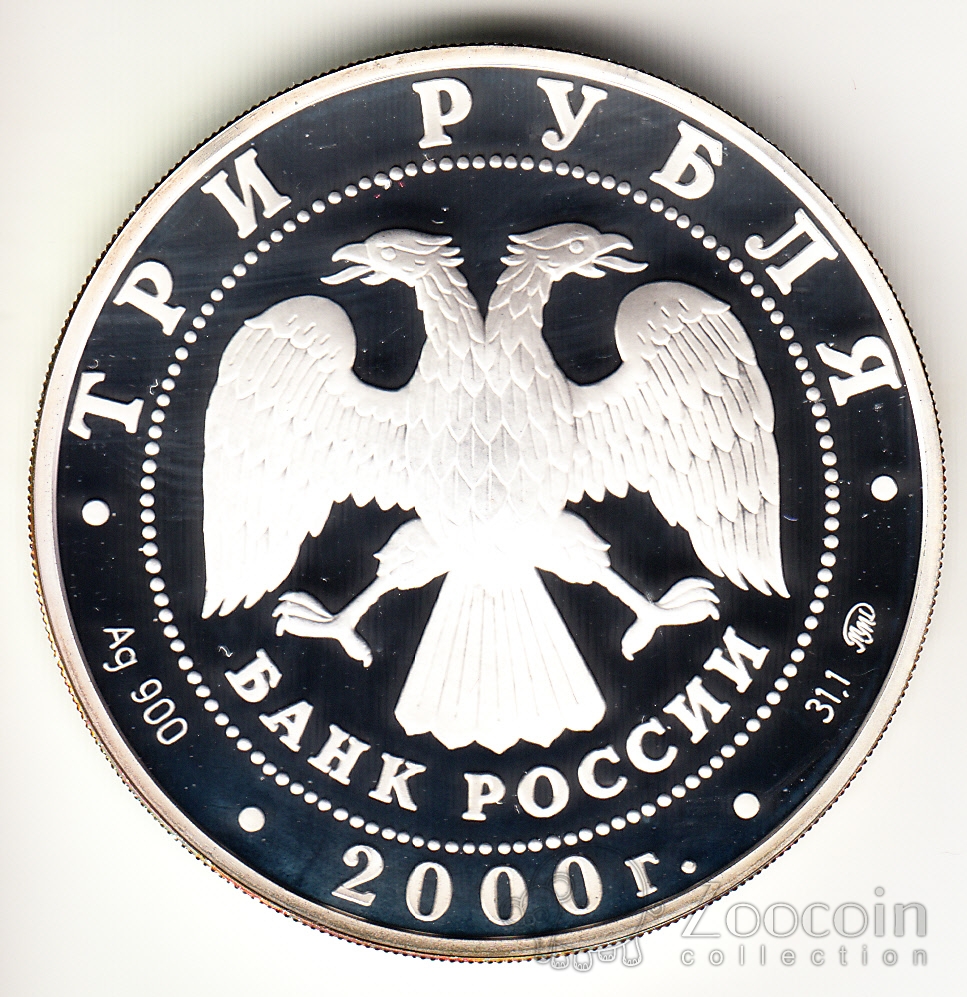 Россия 3 рубля 2000 Миллениум - космонавтика и химия