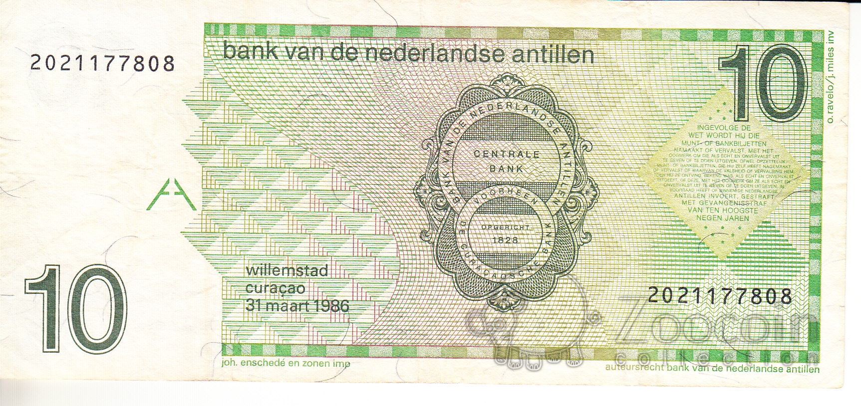 Нидерландские Антиллы 10 гульденов 1986 Нидерландские Антиллы 10 гульденов 1986