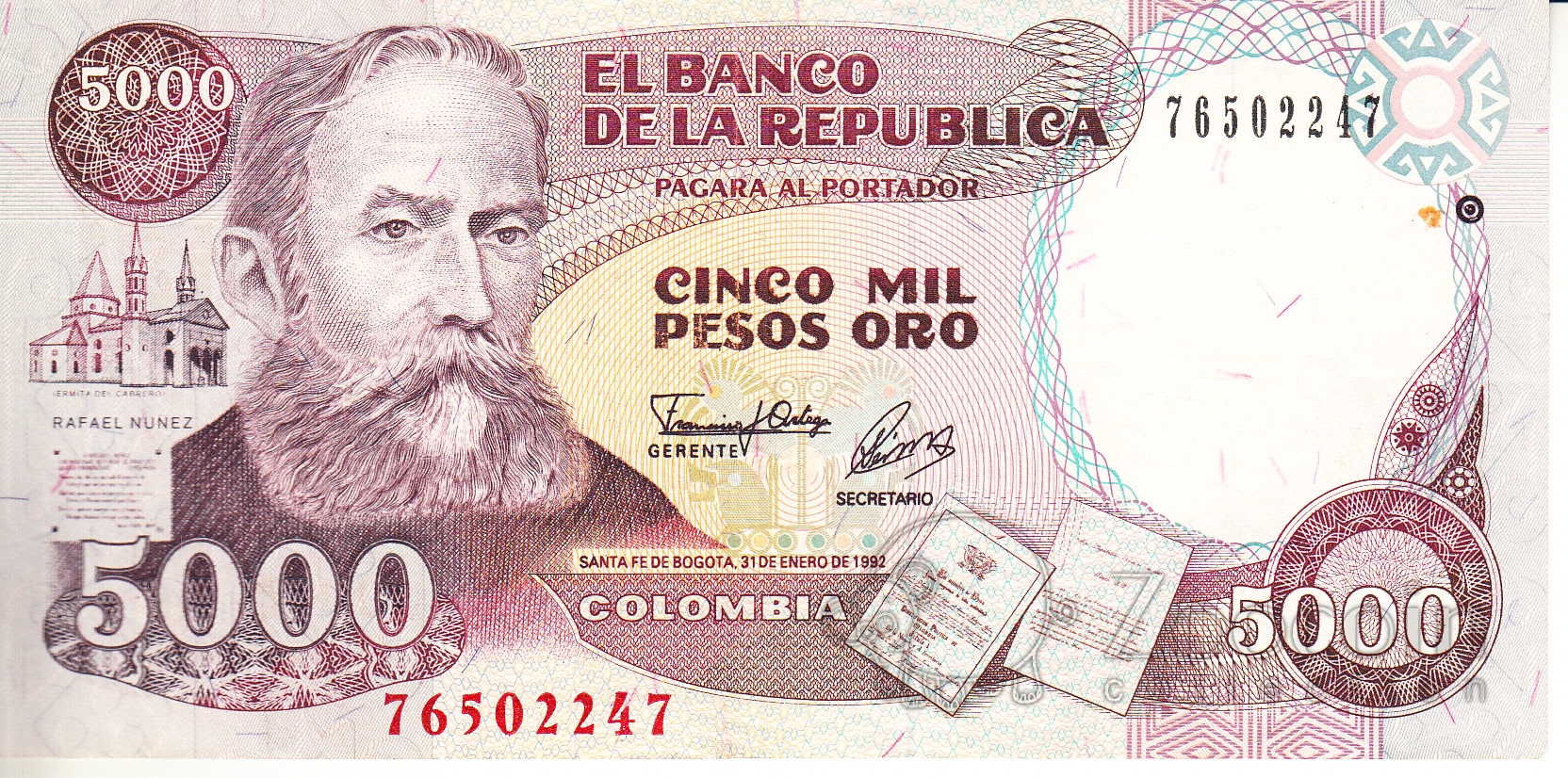 Колумбия 5000 песо 1992