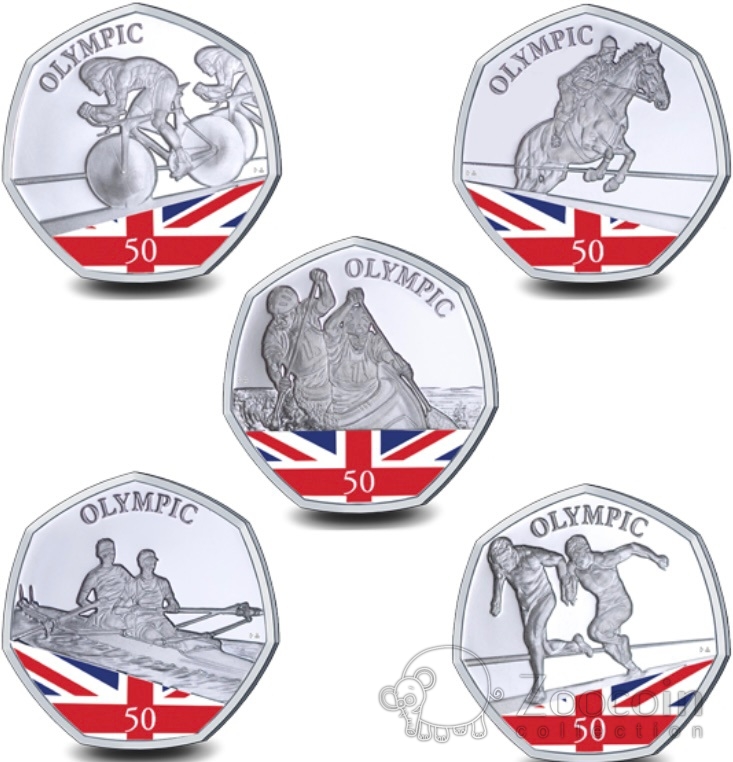Гибралтар набор 5 монет 50 пенсов 2021 Олимпийские Игры в Токио цветные (блистеры, тираж 750 шт.)