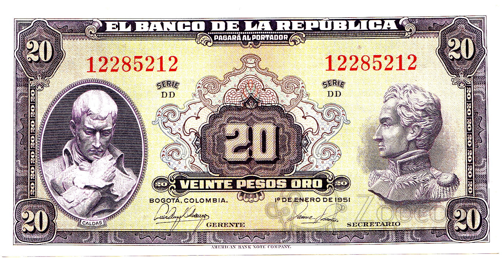 Колумбия 20 песо 1951 Колумбия 20 песо 1951