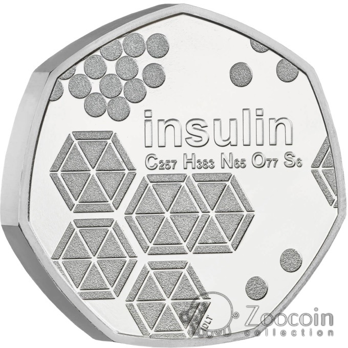 Великобритания 50 пенсов 2021 100 лет Изобретения Инсулина (блистер)