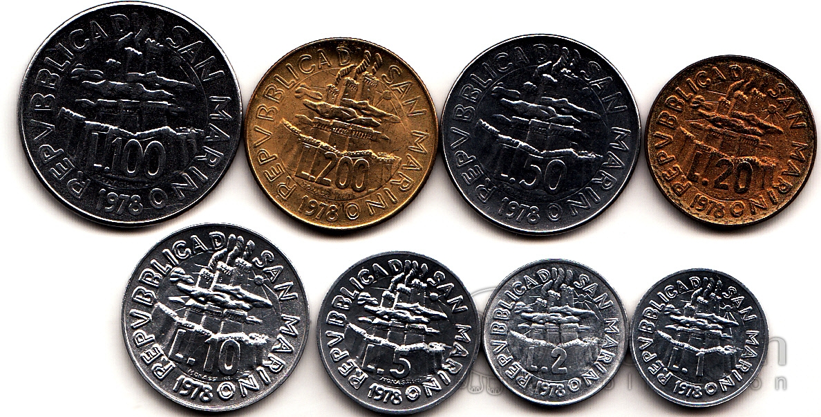 Сан-Марино набор 8 монет 1978 - 1, 2, 5, 10, 20, 50, 100, 200 лир