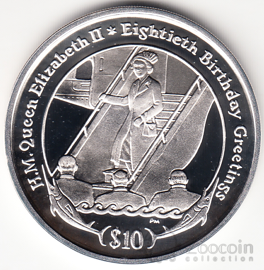 Брит. Виргинские острова 10 долларов 2006 80 лет королеве Елизавете 2 (серебро) №3
