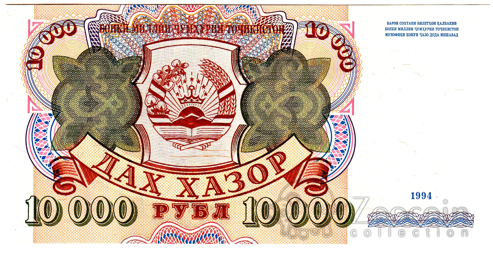 Таджикистан 10000 рублей 1994 Таджикистан 10000 рублей 1994