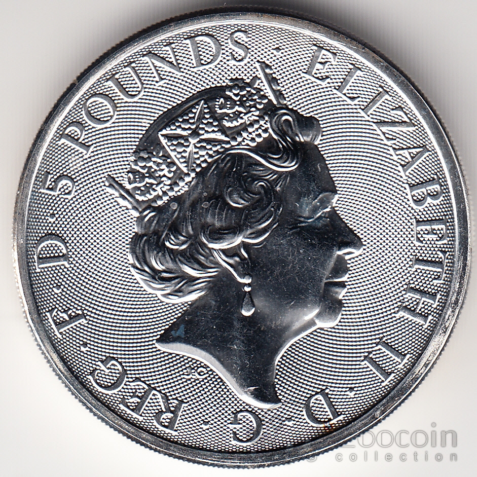 Великобритания 5 фунтов 2020 Звери Королевы - Белый лев Мортимера