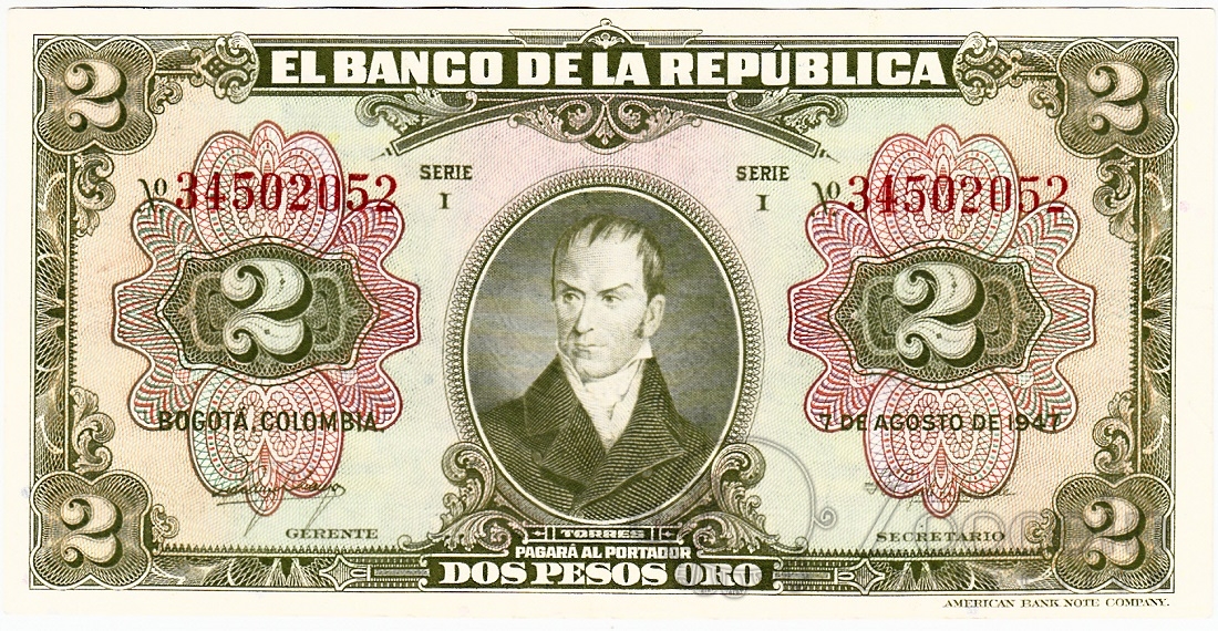 Колумбия 2 песо 1947
