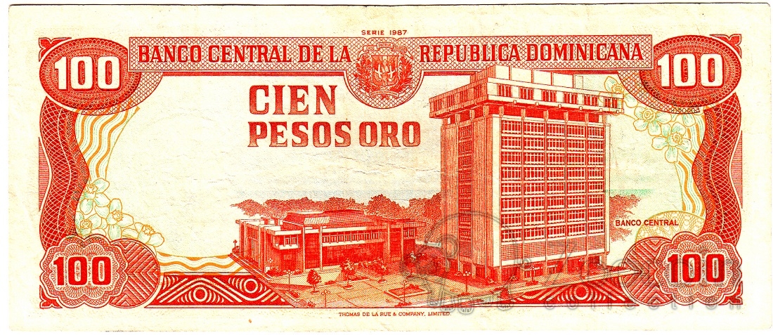 на банкноте - Монетный двор / Центральное здание банка, Санто-Доминго