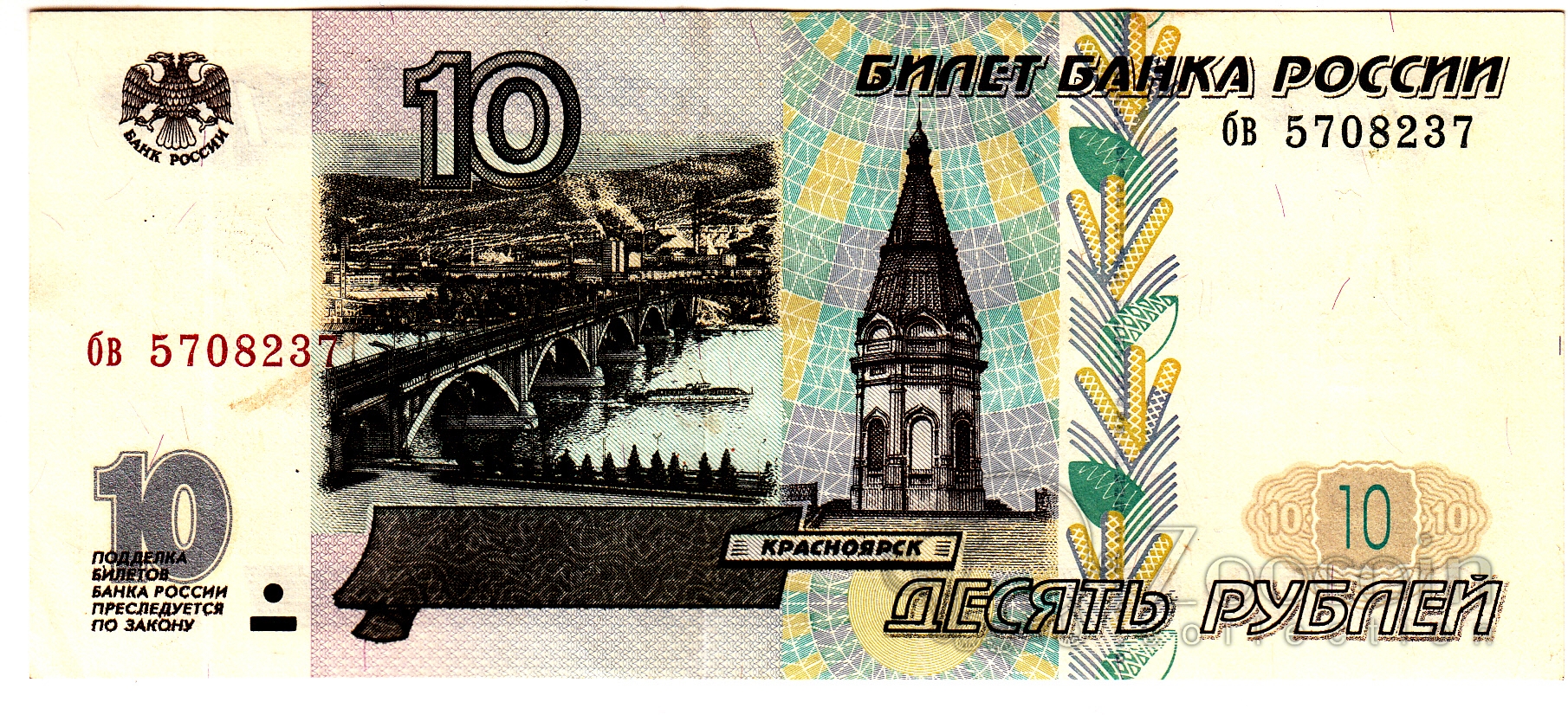 Россия 10 рублей 1997 (без модификаций, серия бВ)