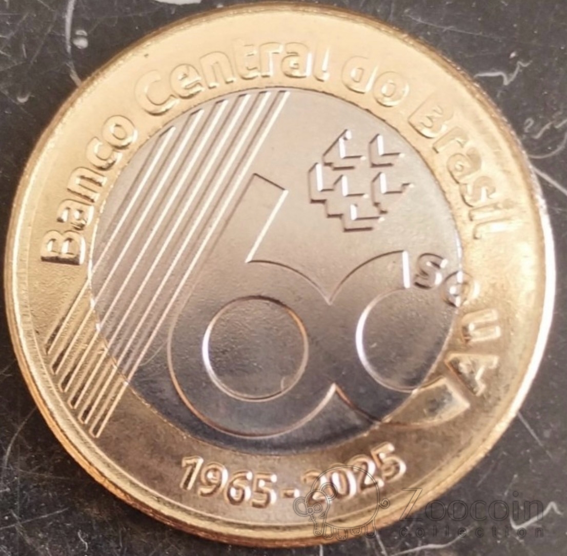 Бразилия 1 реал 2025 60 лет Центральному банку