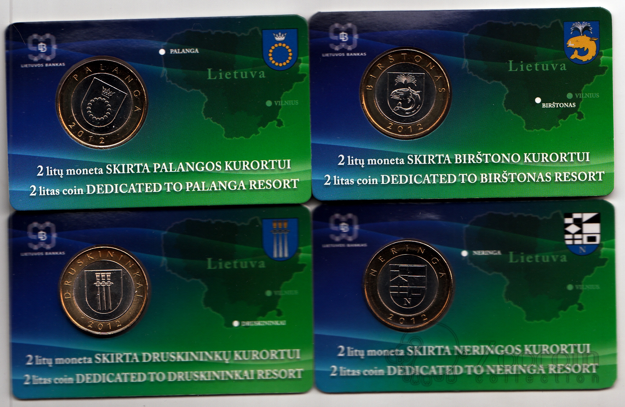 Литва набор 4 монеты 2012 Курорты Литвы (карты) Литва набор 4 монеты 2012 Курорты Литвы (карты)