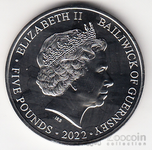 Гернси 5 фунтов 2022 70 лет правлению Королевы Елизаветы II (цветная)
