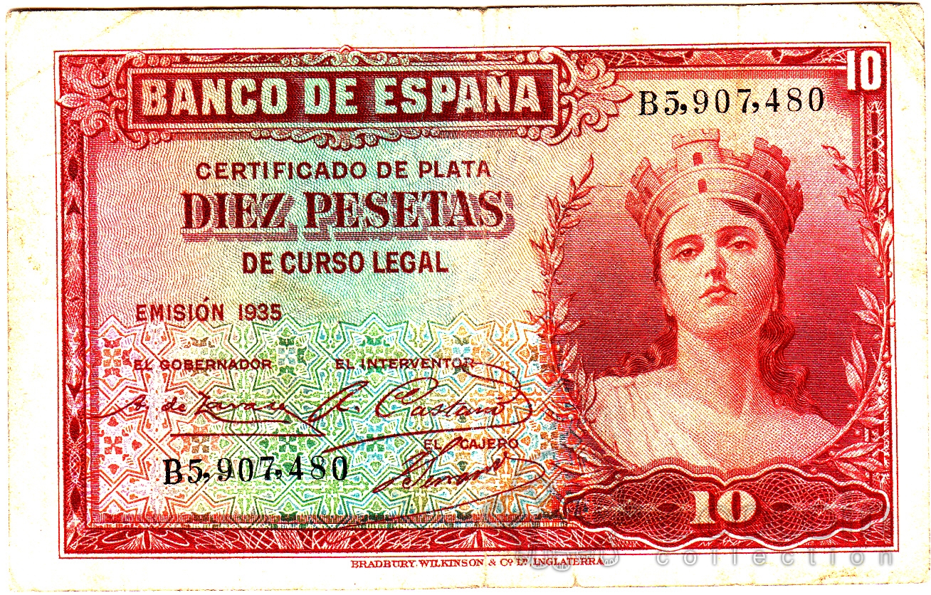 Испания 10 песет 1935 (В5 907 480) Испания 10 песет 1935 (В5 907 480)