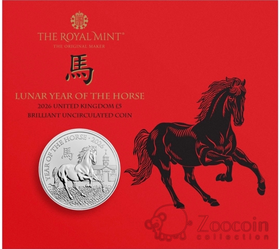 Великобритания 5 фунтов 2026 Восточный календарь - Год Лошади (блистер)